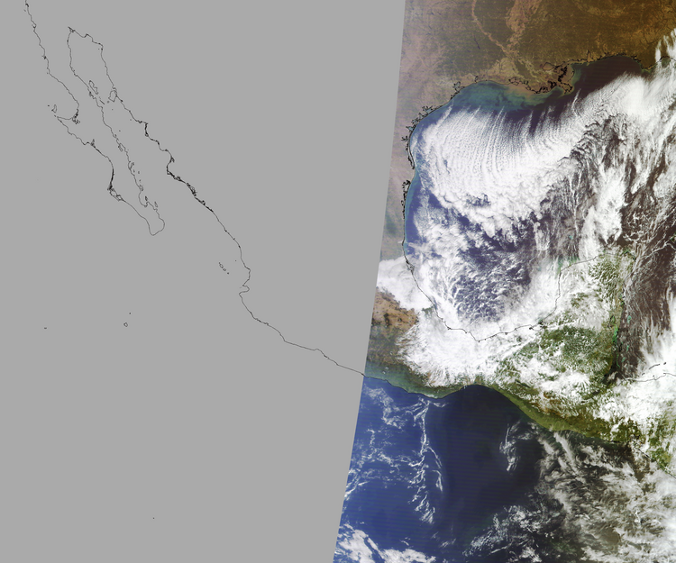 Nubosidad en el terreno:26% Nubosidad sobre México:45% Datos nulos en la escena:55% Datos nulos sobre México:72% |
