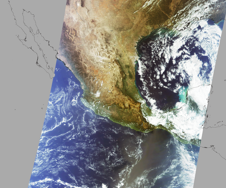 Nubosidad en el terreno:12% Nubosidad sobre México:11% Datos nulos en la escena:28% Datos nulos sobre México:16% |