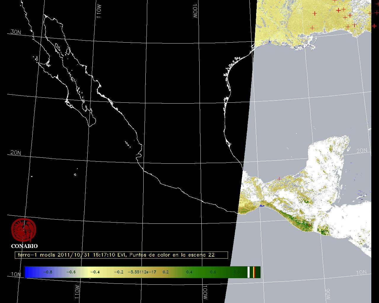 Se considera como punto de calor al elemento espacial mínimo de la imagen (pixel) que reporta una temperatura elevada. Para las imágenes diurnas la temperatura mínima considera es de 42 C y para las imágenes nocturnas es de 25 C. |