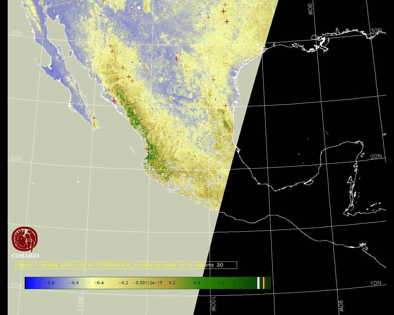 Se considera como punto de calor al elemento espacial mínimo de la imagen (pixel) que reporta una temperatura elevada. Para las imágenes diurnas la temperatura mínima considera es de 42 C y para las imágenes nocturnas es de 25 C. |