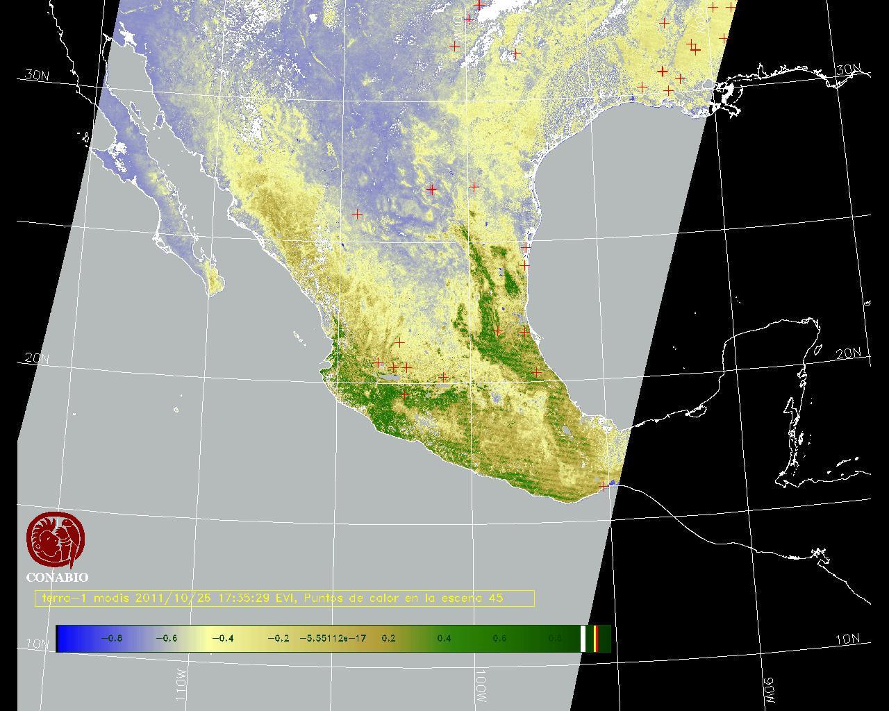 Nubosidad en el terreno:3% Nubosidad sobre México:1% Datos nulos en la escena:29% Datos nulos sobre México:15% |