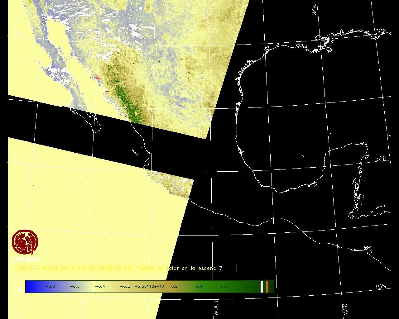 Se considera como punto de calor al elemento espacial mínimo de la imagen (pixel) que reporta una temperatura elevada. Para las imágenes diurnas la temperatura mínima considera es de 42 C y para las imágenes nocturnas es de 25 C. |