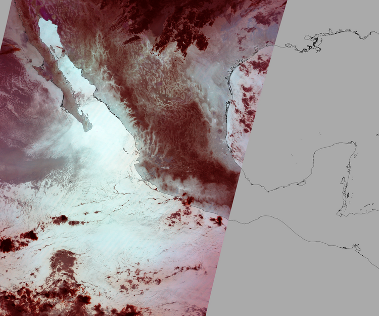 Nubosidad sobre el terreno:6% Nubosidad sobre México:0% Datos nulos en la escena:35% Datos nulos sobre México:18% |