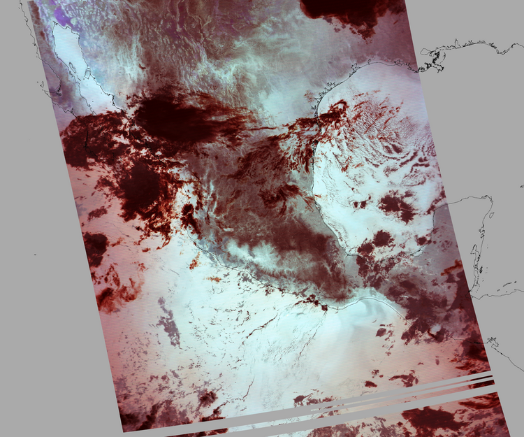 Nubosidad en el terreno:10% Nubosidad sobre México:11% Datos nulos en la escena:28% Datos nulos sobre México:4% |