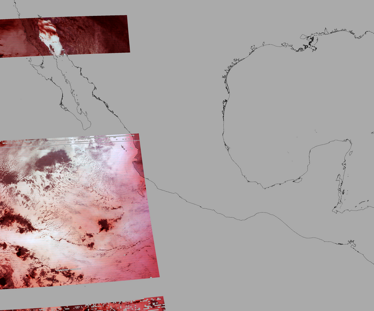 Nubosidad sobre el terreno:4% Nubosidad sobre México:2% Datos nulos en la escena:61% Datos nulos sobre México:69% |