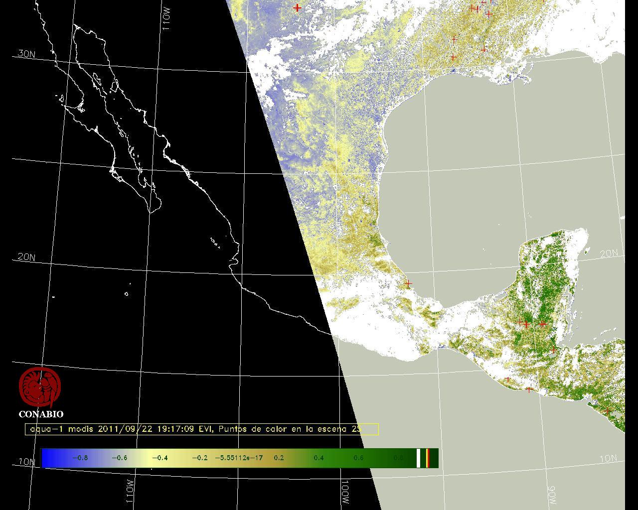 Se considera como punto de calor al elemento espacial mínimo de la imagen (pixel) que reporta una temperatura elevada. Para las imágenes diurnas la temperatura mínima considera es de 42 C y para las imágenes nocturnas es de 25 C. |