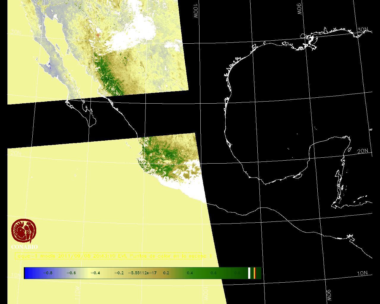 Se considera como punto de calor al elemento espacial mínimo de la imagen (pixel) que reporta una temperatura elevada. Para las imágenes diurnas la temperatura mínima considera es de 42 C y para las imágenes nocturnas es de 25 C. |