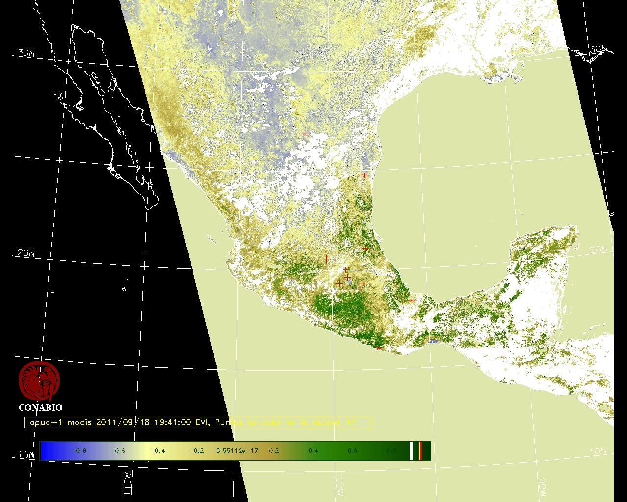 Nubosidad en el terreno:29% Nubosidad sobre México:21% Datos nulos en la escena:31% Datos nulos sobre México:11% |