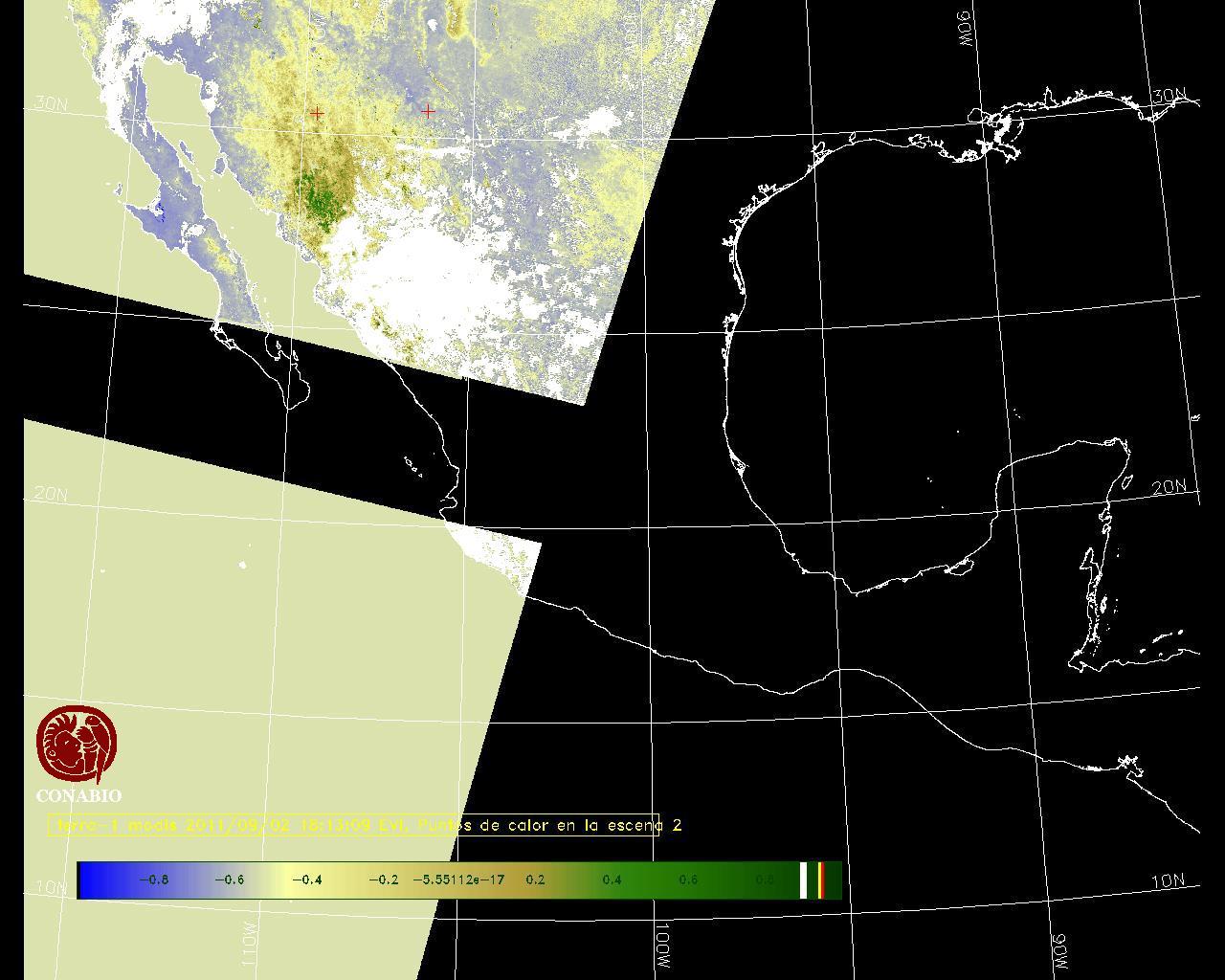 Se considera como punto de calor al elemento espacial mínimo de la imagen (pixel) que reporta una temperatura elevada. Para las imágenes diurnas la temperatura mínima considera es de 42 C y para las imágenes nocturnas es de 25 C. |