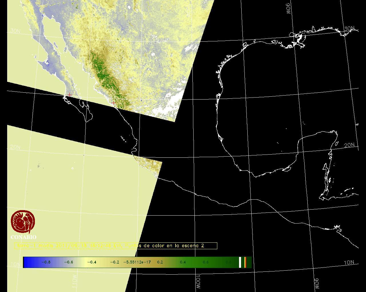 Nubosidad en el terreno:4% Nubosidad sobre México:5% Datos nulos en la escena:54% Datos nulos sobre México:44% |