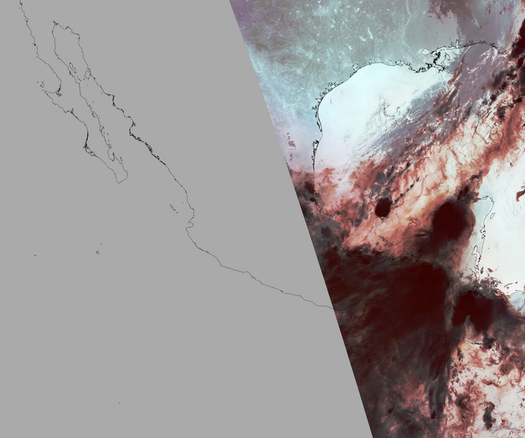 Nubosidad en el terreno:34% Nubosidad sobre México:67% Datos nulos en la escena:57% Datos nulos sobre México:74% |