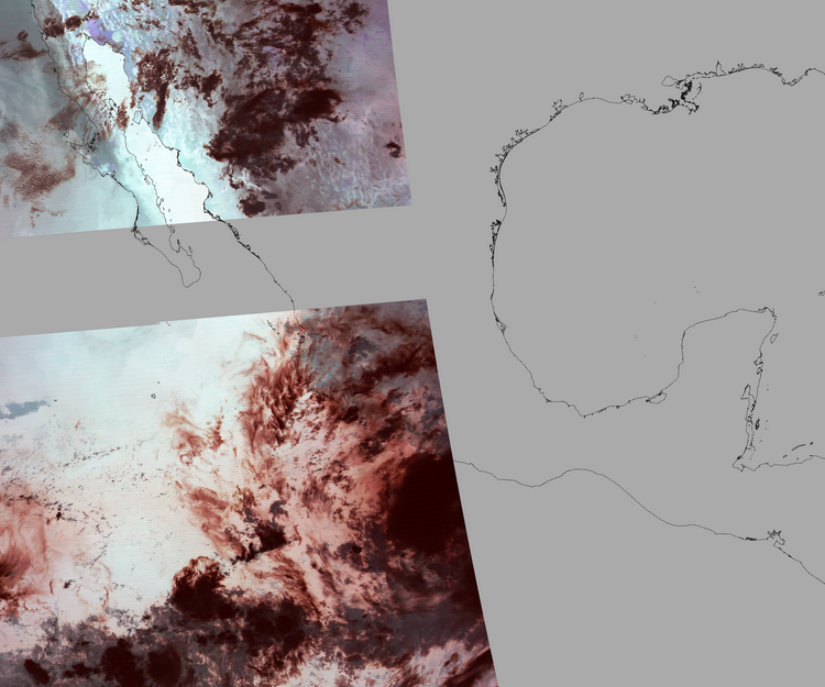 Nubosidad sobre el terreno:17% Nubosidad sobre México:17% Datos nulos en la escena:47% Datos nulos sobre México:36% |