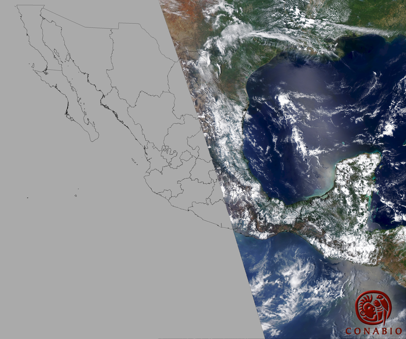 Nubosidad en el terreno:12% Nubosidad sobre México:9% Datos nulos en la escena:0% Datos nulos sobre México:0% |