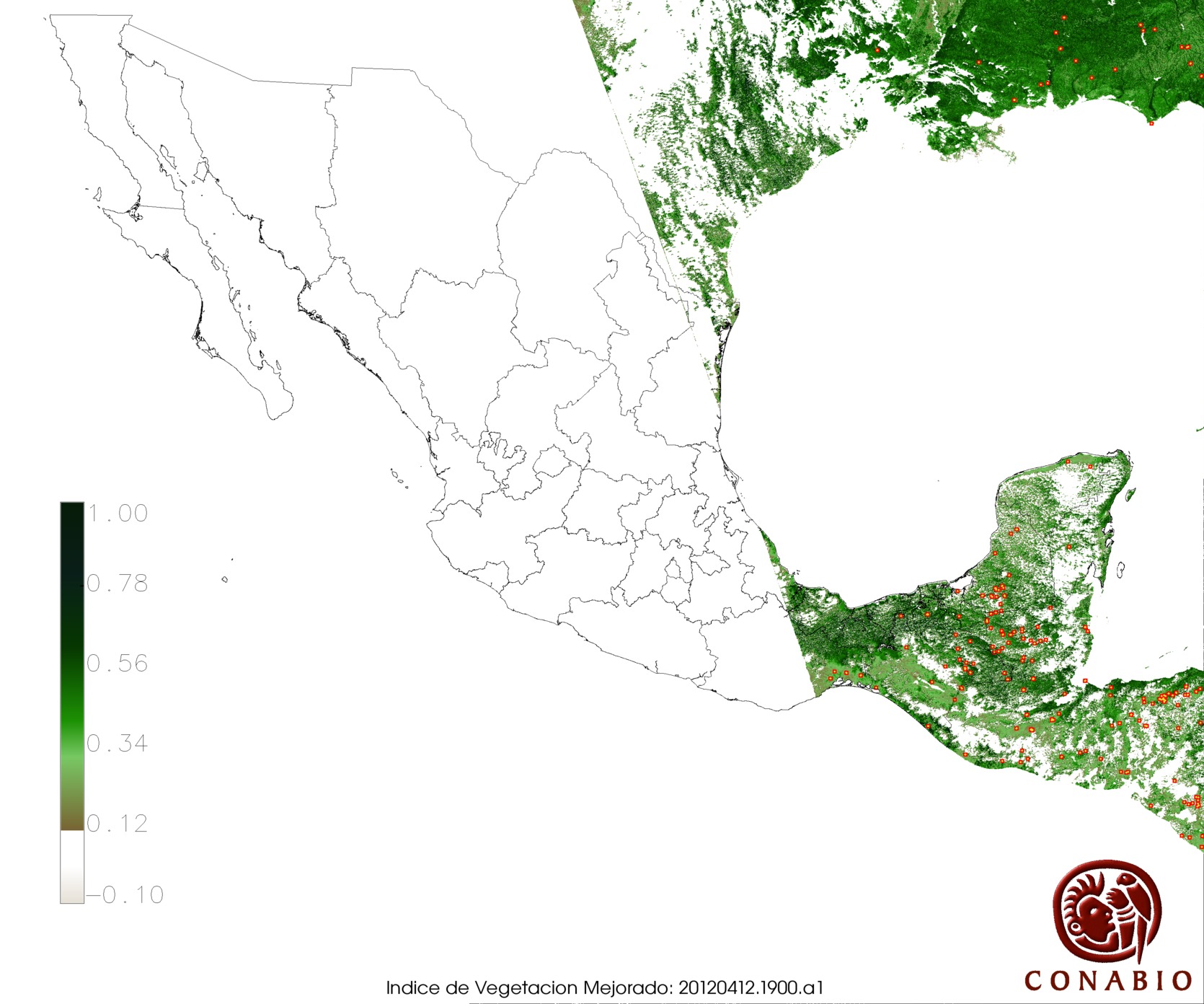 Nubosidad en el terreno:12% Nubosidad sobre México:3% Datos nulos en la escena:0% Datos nulos sobre México:0% |