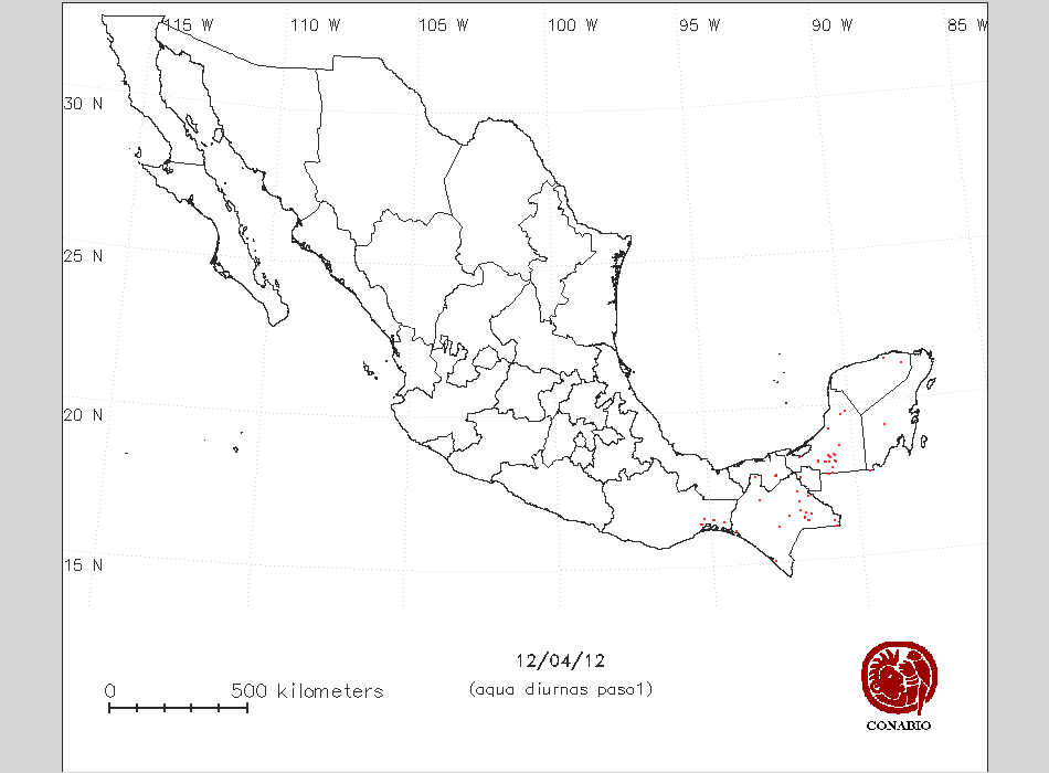 | 15 | 1 | -90 47 59 | 18 14 9 | Pastizal cultivado | Candelaria,Campeche | NO AFECTA | 0 ° | ND | |