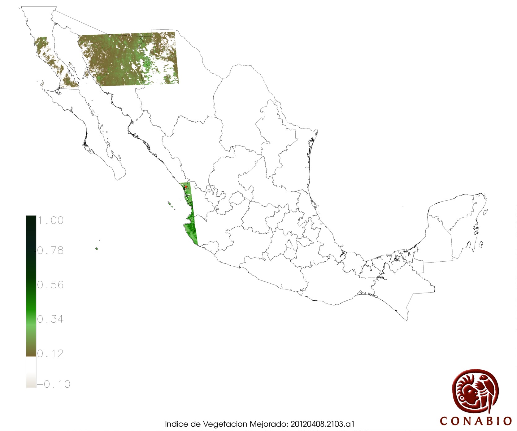 Nubosidad en el terreno:1% Nubosidad sobre México:2% Datos nulos en la escena:0% Datos nulos sobre México:0% |