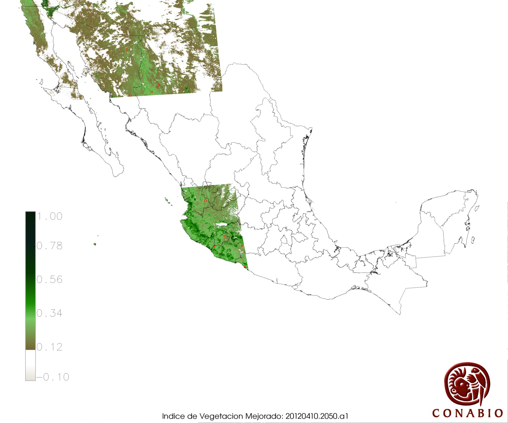 Nubosidad en el terreno:5% Nubosidad sobre México:4% Datos nulos en la escena:0% Datos nulos sobre México:0% |