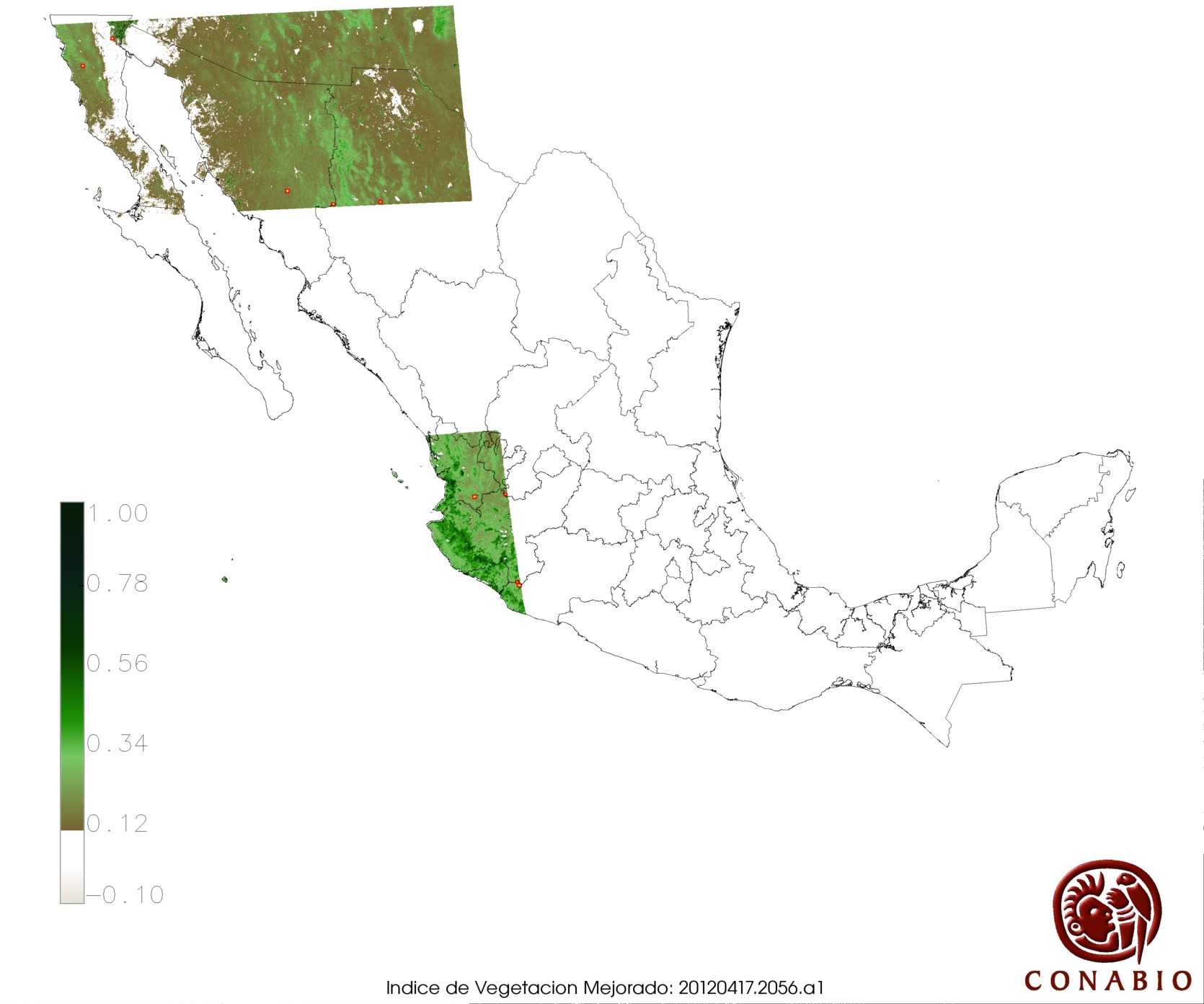 Nubosidad en el terreno:0% Nubosidad sobre México:0% Datos nulos en la escena:0% Datos nulos sobre México:0% |