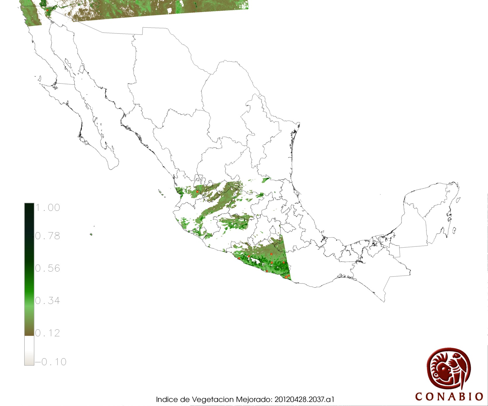 Los valores del índice van de -1 a 1, entre más cercano al valor 1 la vegetación presenta mayor vigor. Los índices de vegetación son utilizados para conocer el comportamiento de la vegetación tanto espacial como temporal. |