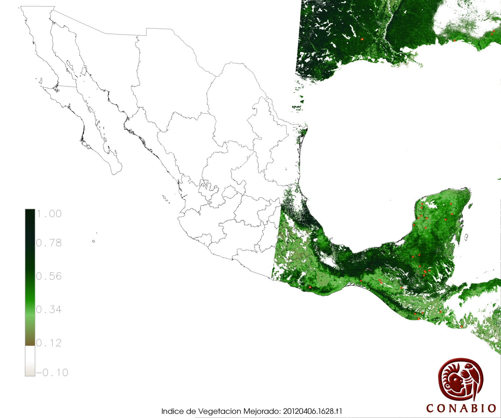 Nubosidad en el terreno:7% Nubosidad sobre México:3% Datos nulos en la escena:0% Datos nulos sobre México:0% |