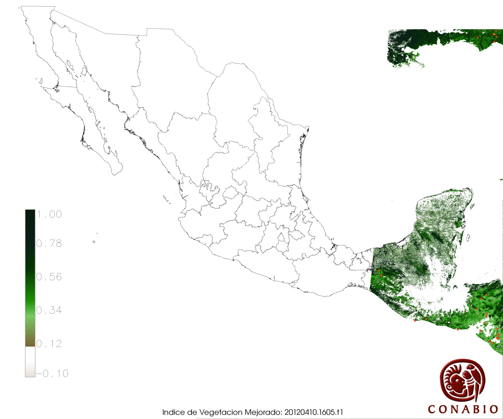 Nubosidad en el terreno:4% Nubosidad sobre México:2% Datos nulos en la escena:0% Datos nulos sobre México:0% |