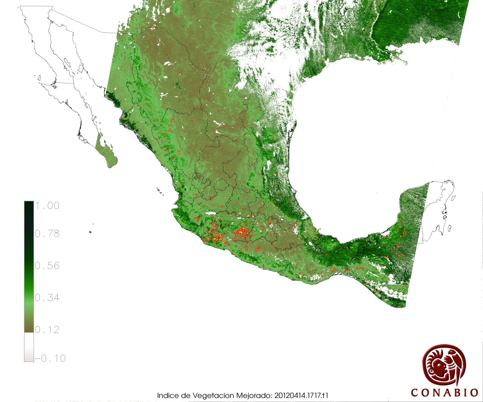 Nubosidad en el terreno:9% Nubosidad sobre México:2% Datos nulos en la escena:0% Datos nulos sobre México:0% |
