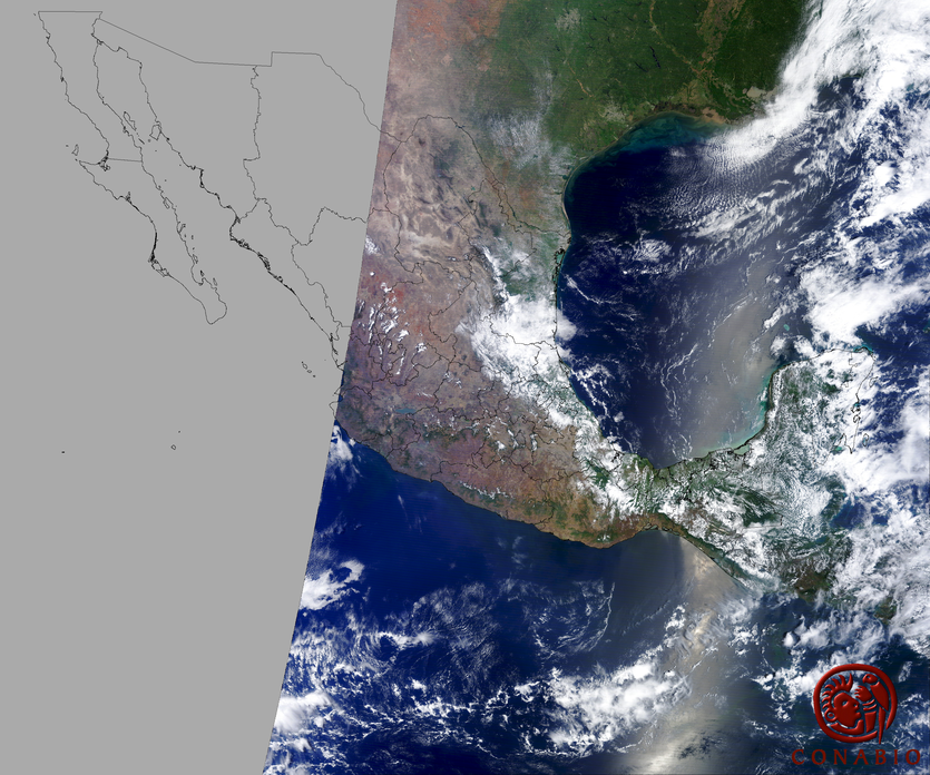 Nubosidad en el terreno:13% Nubosidad sobre México:10% Datos nulos en la escena:0% Datos nulos sobre México:0% |
