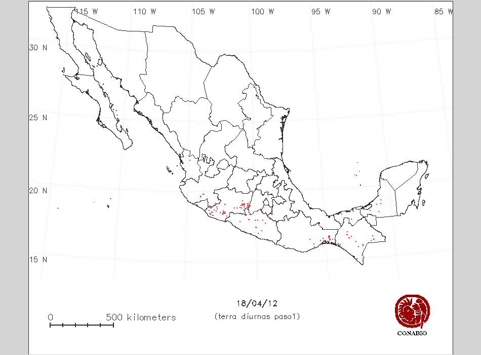 | 108 | 1 | -94 36 13 | 16 39 42 | Pastizal inducido | San Miguel Chimalapa,Oaxaca | NO AFECTA | 13 ° | Normal | |