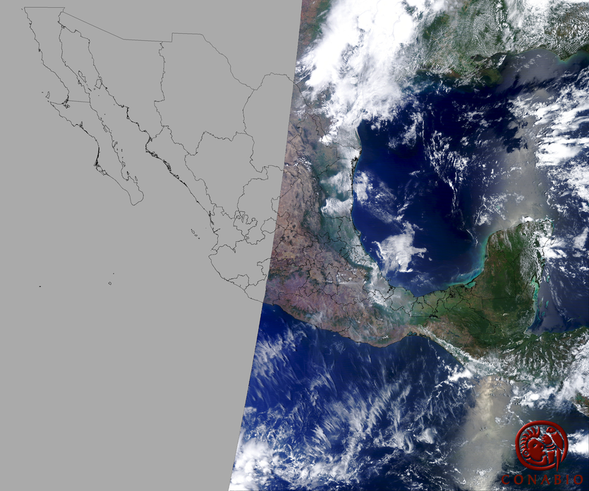 Nubosidad en el terreno:14% Nubosidad sobre México:2% Datos nulos en la escena:0% Datos nulos sobre México:0% |