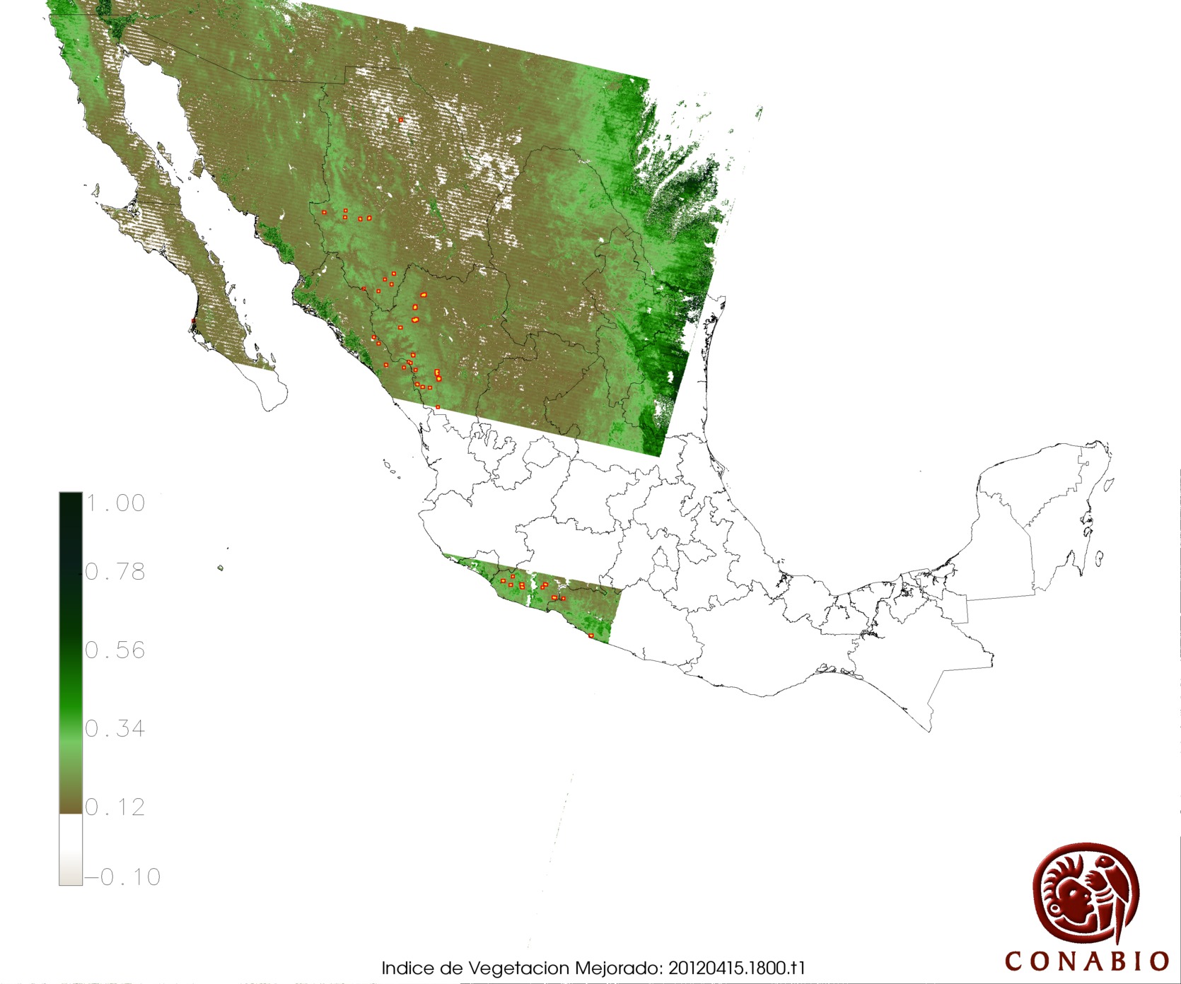 | X | 39 | -105 28 10 | 23 39 0 | Bosque de pino-encino | Pueblo Nuevo,Durango | NO AFECTA | 13 ° | Bajo | |