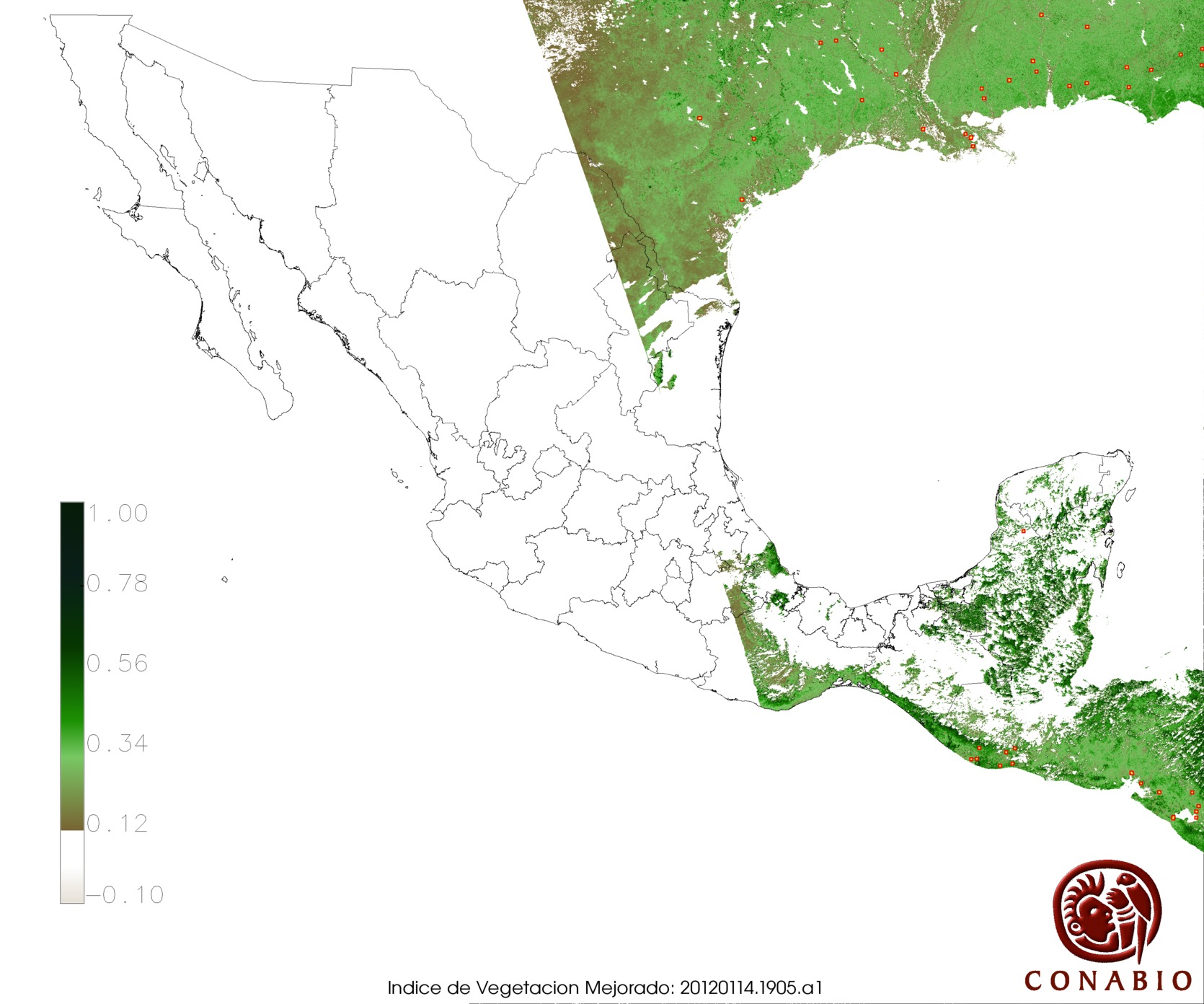Los valores del índice van de -1 a 1, entre más cercano al valor 1 la vegetación presenta mayor vigor. Los índices de vegetación son utilizados para conocer el comportamiento de la vegetación tanto espacial como temporal. |