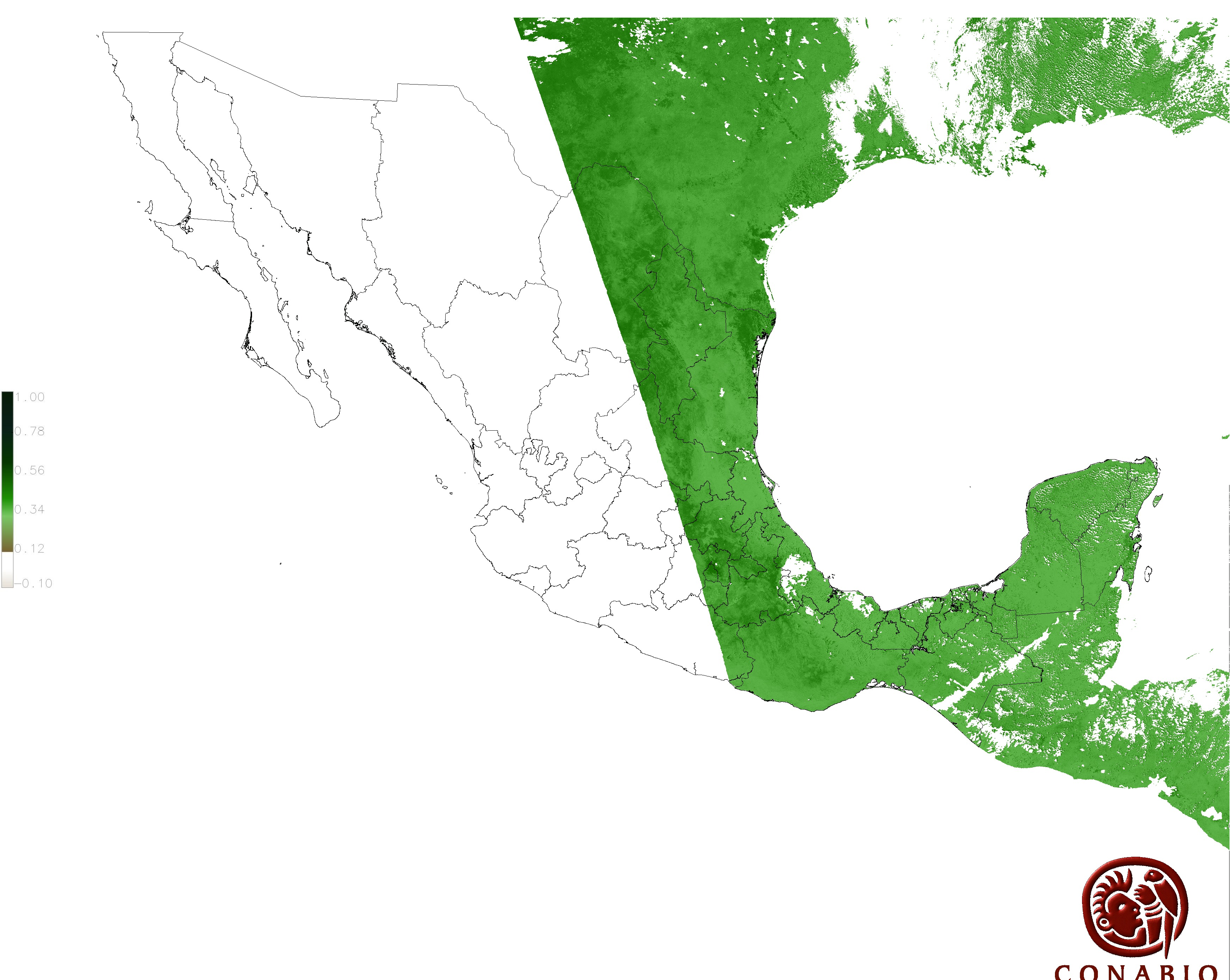 Los valores del índice van de -1 a 1, entre más cercano al valor 1 la vegetación presenta mayor vigor. Los índices de vegetación son utilizados para conocer el comportamiento de la vegetación tanto espacial como temporal. |