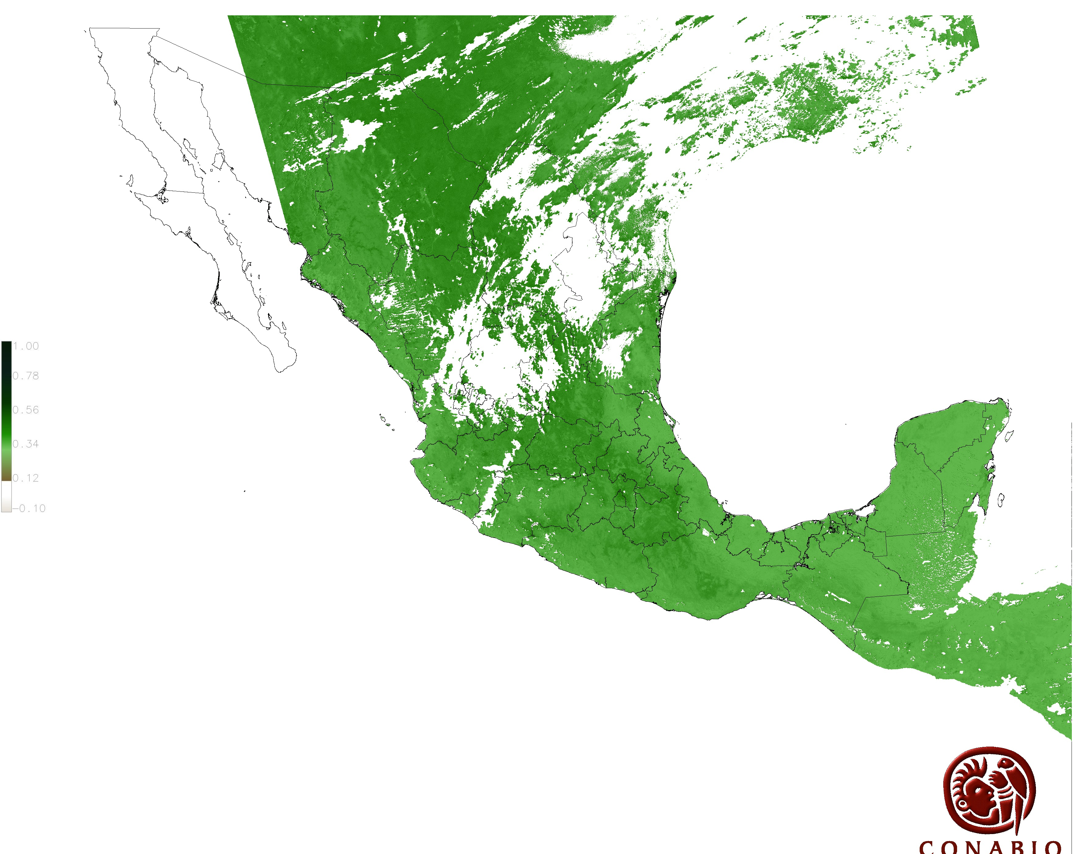 Los valores del índice van de -1 a 1, entre más cercano al valor 1 la vegetación presenta mayor vigor. Los índices de vegetación son utilizados para conocer el comportamiento de la vegetación tanto espacial como temporal. |