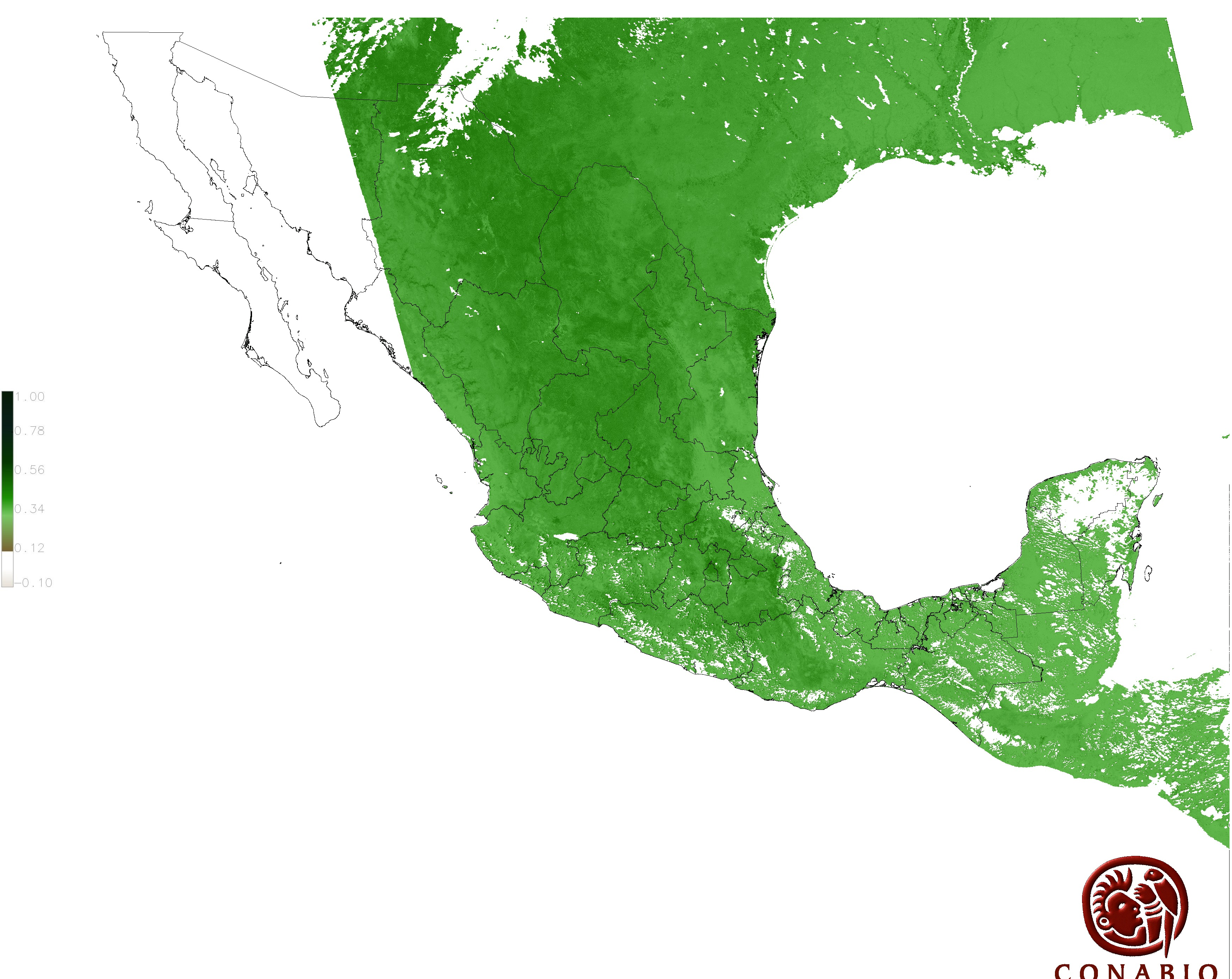 Los valores del índice van de -1 a 1, entre más cercano al valor 1 la vegetación presenta mayor vigor. Los índices de vegetación son utilizados para conocer el comportamiento de la vegetación tanto espacial como temporal. |