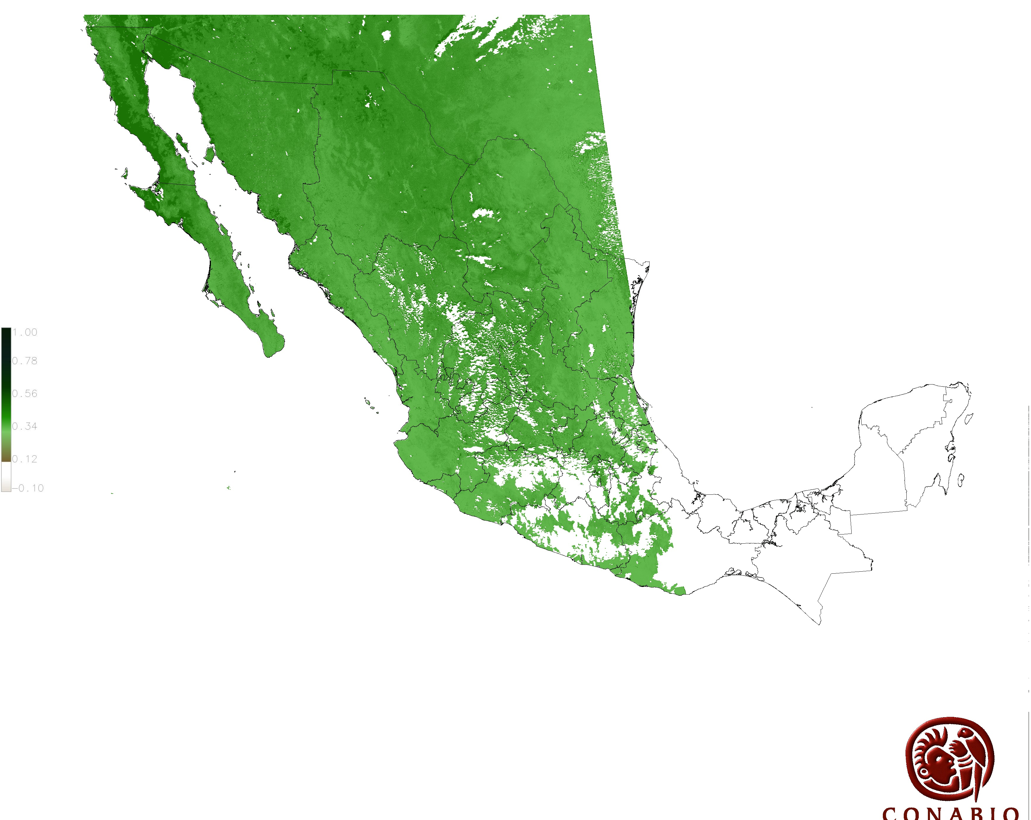 Los valores del índice van de -1 a 1, entre más cercano al valor 1 la vegetación presenta mayor vigor. Los índices de vegetación son utilizados para conocer el comportamiento de la vegetación tanto espacial como temporal. |