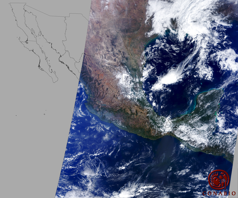 Nubosidad en el terreno:14% Nubosidad sobre México:5% Datos nulos en la escena:0% Datos nulos sobre México:0% |