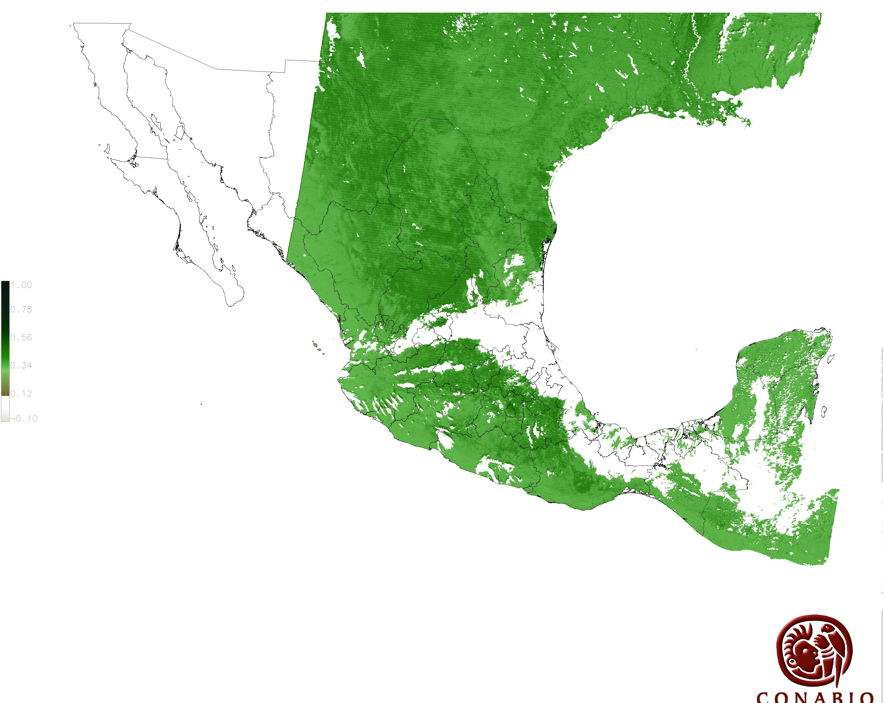 Los valores del índice van de -1 a 1, entre más cercano al valor 1 la vegetación presenta mayor vigor. Los índices de vegetación son utilizados para conocer el comportamiento de la vegetación tanto espacial como temporal. |