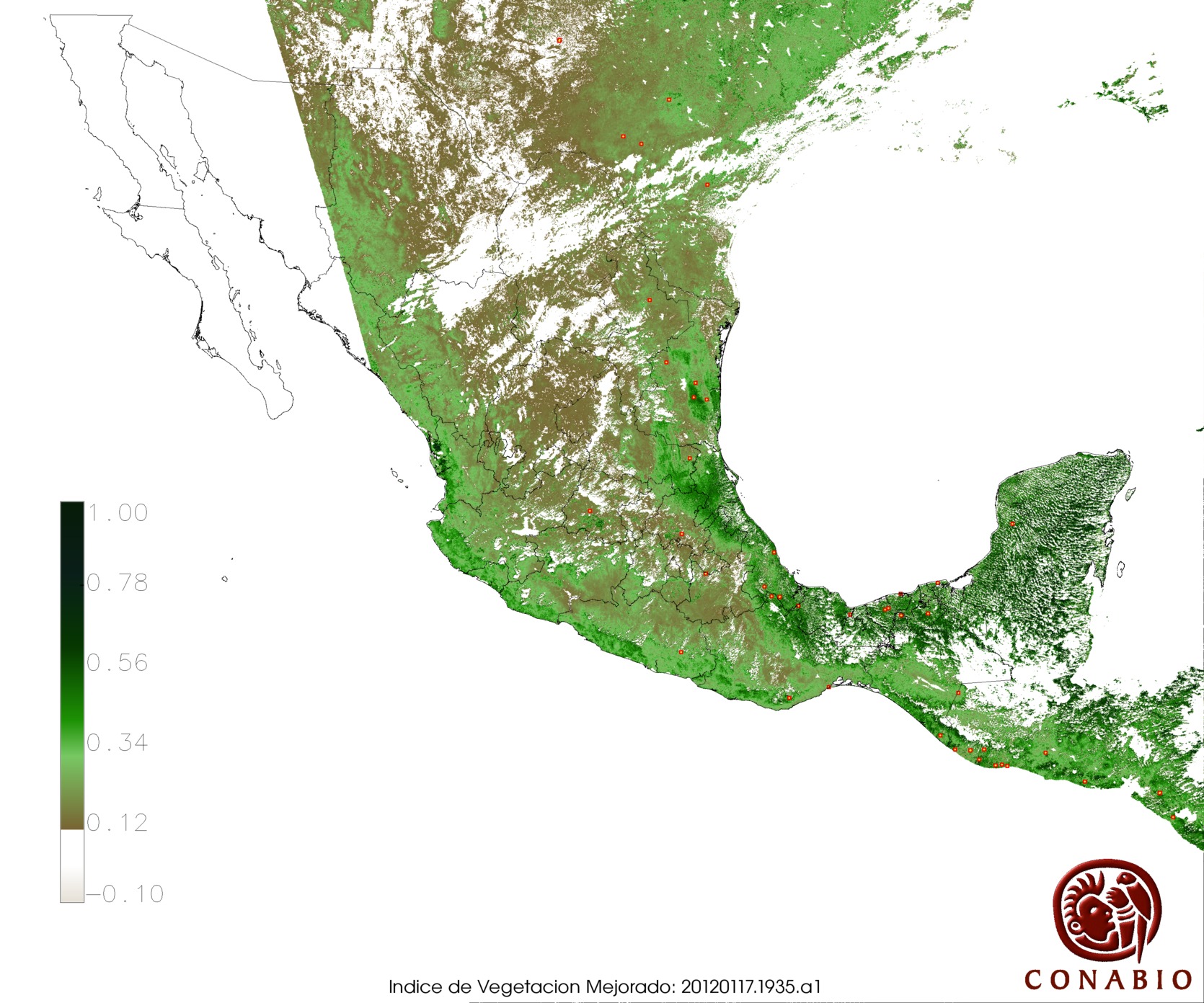 Nubosidad en el terreno:18% Nubosidad sobre México:9% Datos nulos en la escena:0% Datos nulos sobre México:0% |