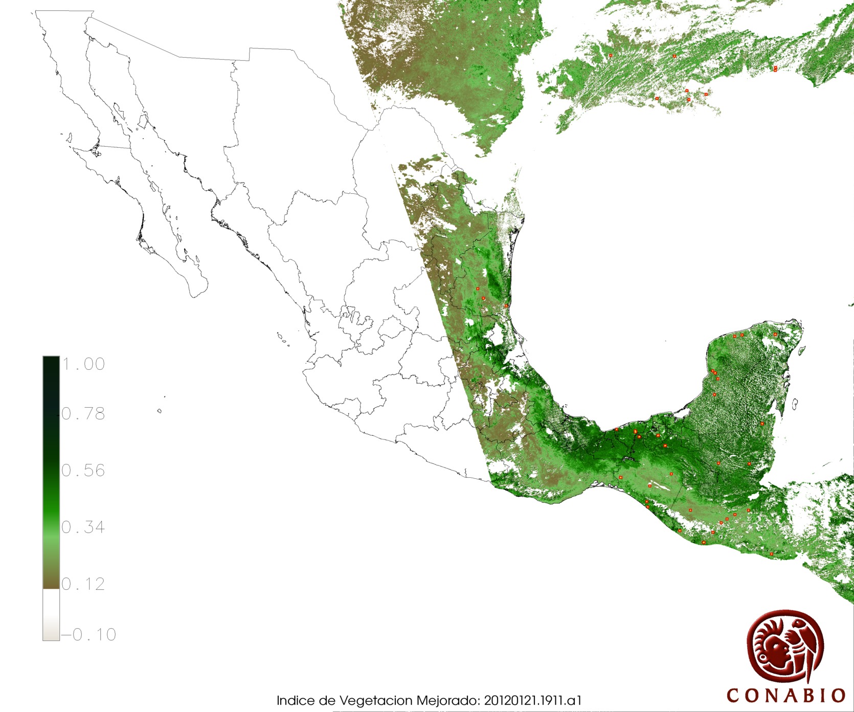 Los valores del índice van de -1 a 1, entre más cercano al valor 1 la vegetación presenta mayor vigor. Los índices de vegetación son utilizados para conocer el comportamiento de la vegetación tanto espacial como temporal. |