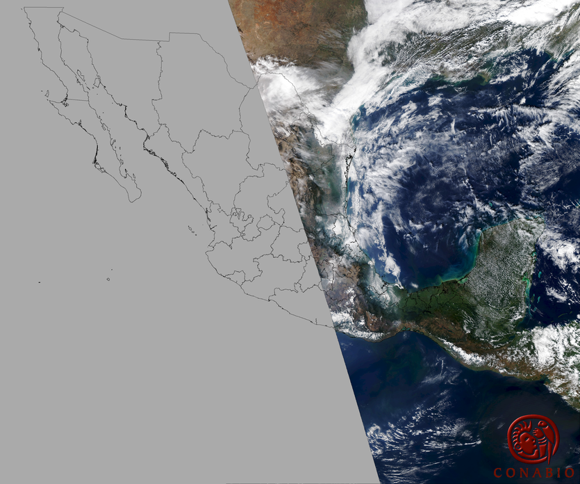 Nubosidad en el terreno:16% Nubosidad sobre México:6% Datos nulos en la escena:0% Datos nulos sobre México:0% |