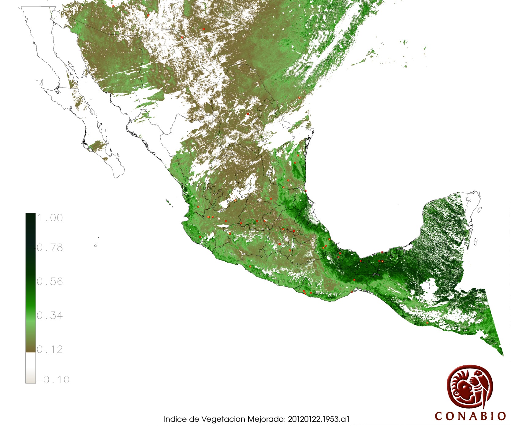 Los valores del índice van de -1 a 1, entre más cercano al valor 1 la vegetación presenta mayor vigor. Los índices de vegetación son utilizados para conocer el comportamiento de la vegetación tanto espacial como temporal. |