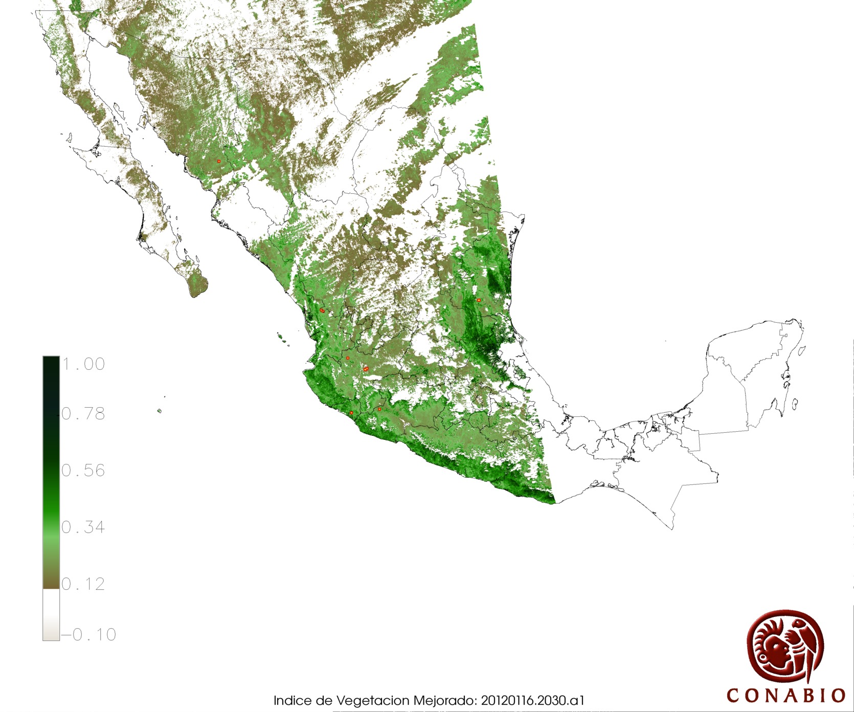 Los valores del índice van de -1 a 1, entre más cercano al valor 1 la vegetación presenta mayor vigor. Los índices de vegetación son utilizados para conocer el comportamiento de la vegetación tanto espacial como temporal. |