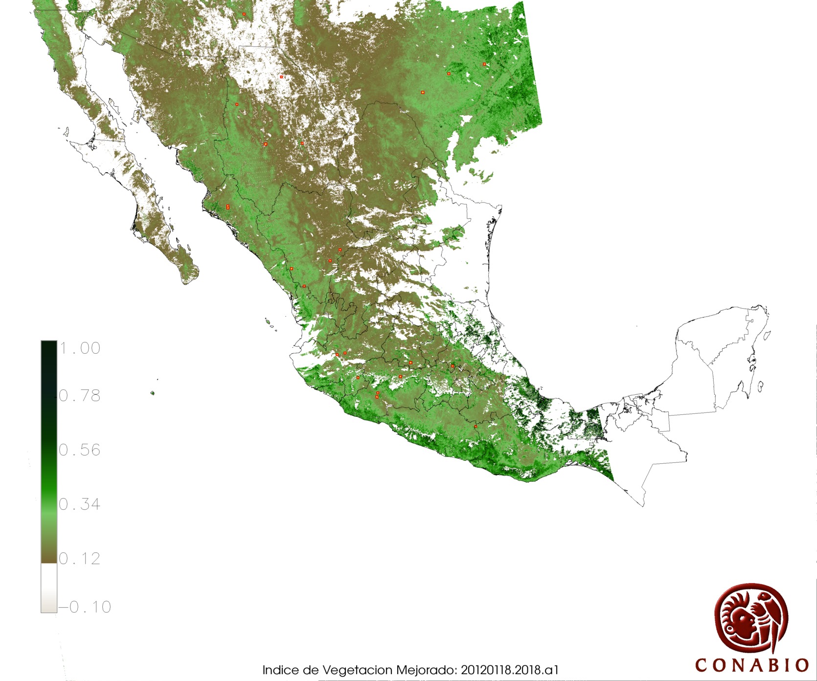 Los valores del índice van de -1 a 1, entre más cercano al valor 1 la vegetación presenta mayor vigor. Los índices de vegetación son utilizados para conocer el comportamiento de la vegetación tanto espacial como temporal. |