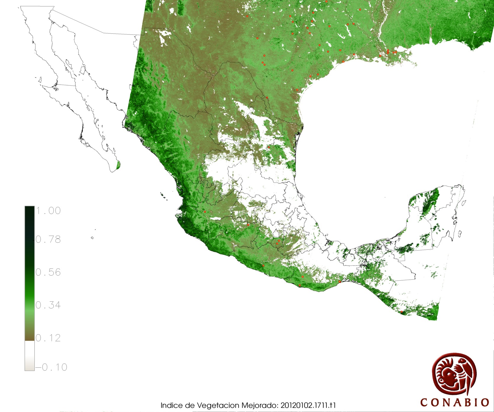 Los valores del índice van de -1 a 1, entre más cercano al valor 1 la vegetación presenta mayor vigor. Los índices de vegetación son utilizados para conocer el comportamiento de la vegetación tanto espacial como temporal. |