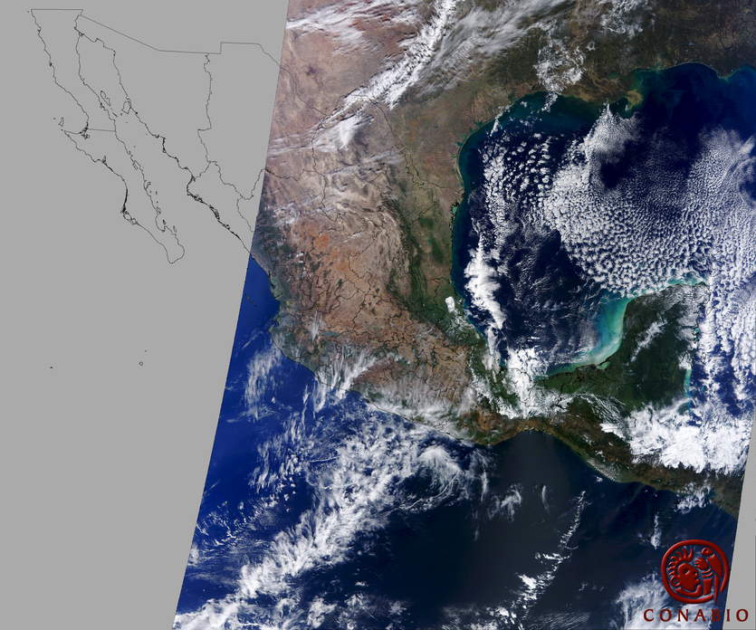 Nubosidad en el terreno:10% Nubosidad sobre México:6% Datos nulos en la escena:0% Datos nulos sobre México:0% |