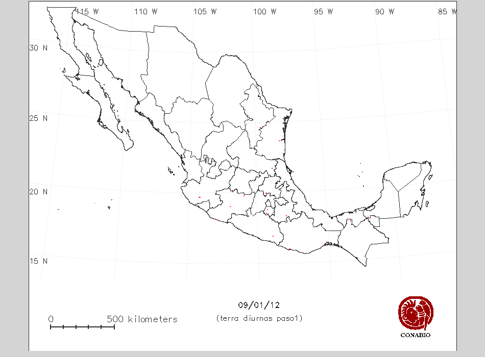 | 12 | -99 38 44 | 24 43 27 | Pastizal cultivado | Linares,Nuevo León | NO AFECTA | 0 ° | NA | ||