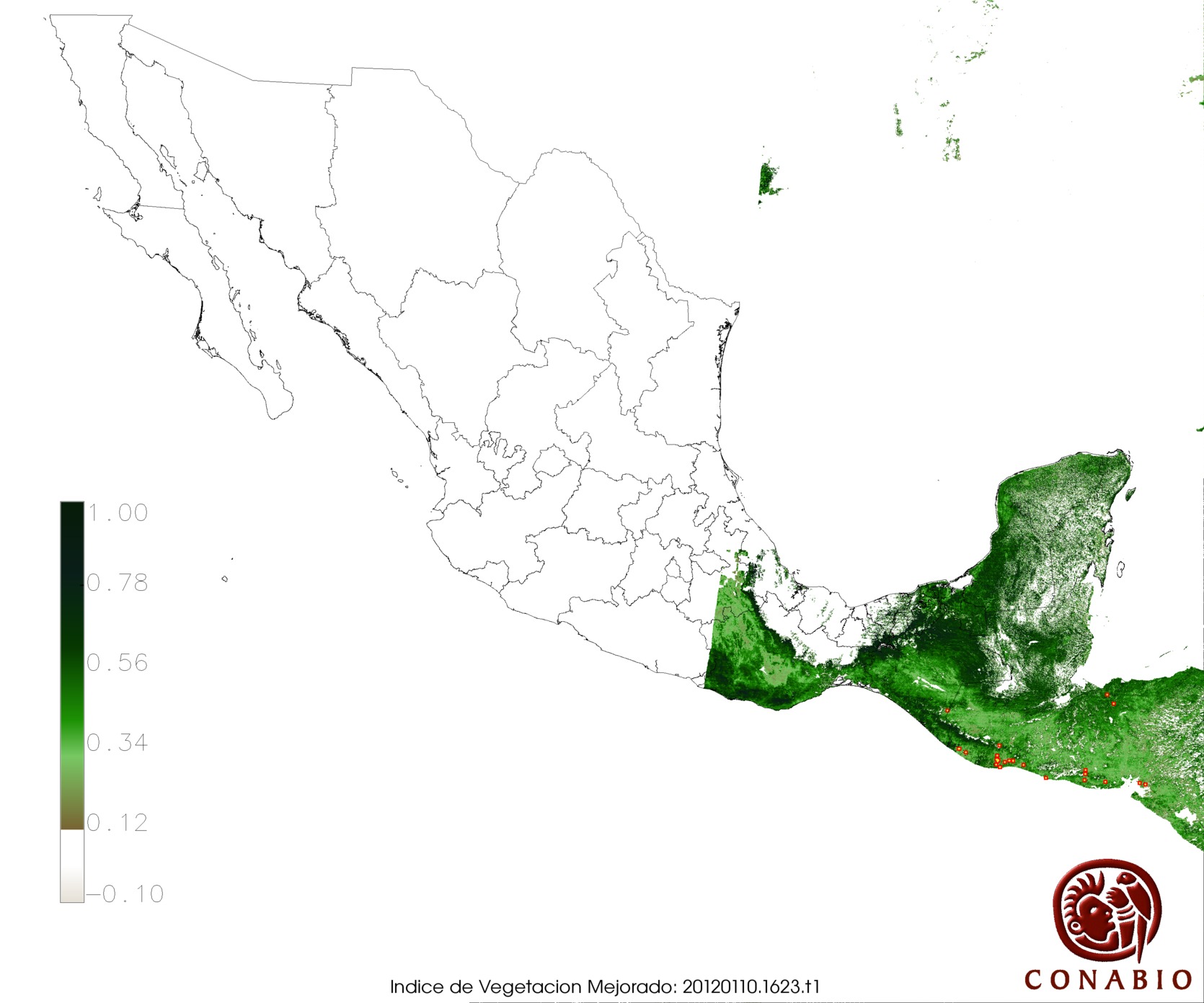 Nubosidad en el terreno:16% Nubosidad sobre México:4% Datos nulos en la escena:0% Datos nulos sobre México:0% |