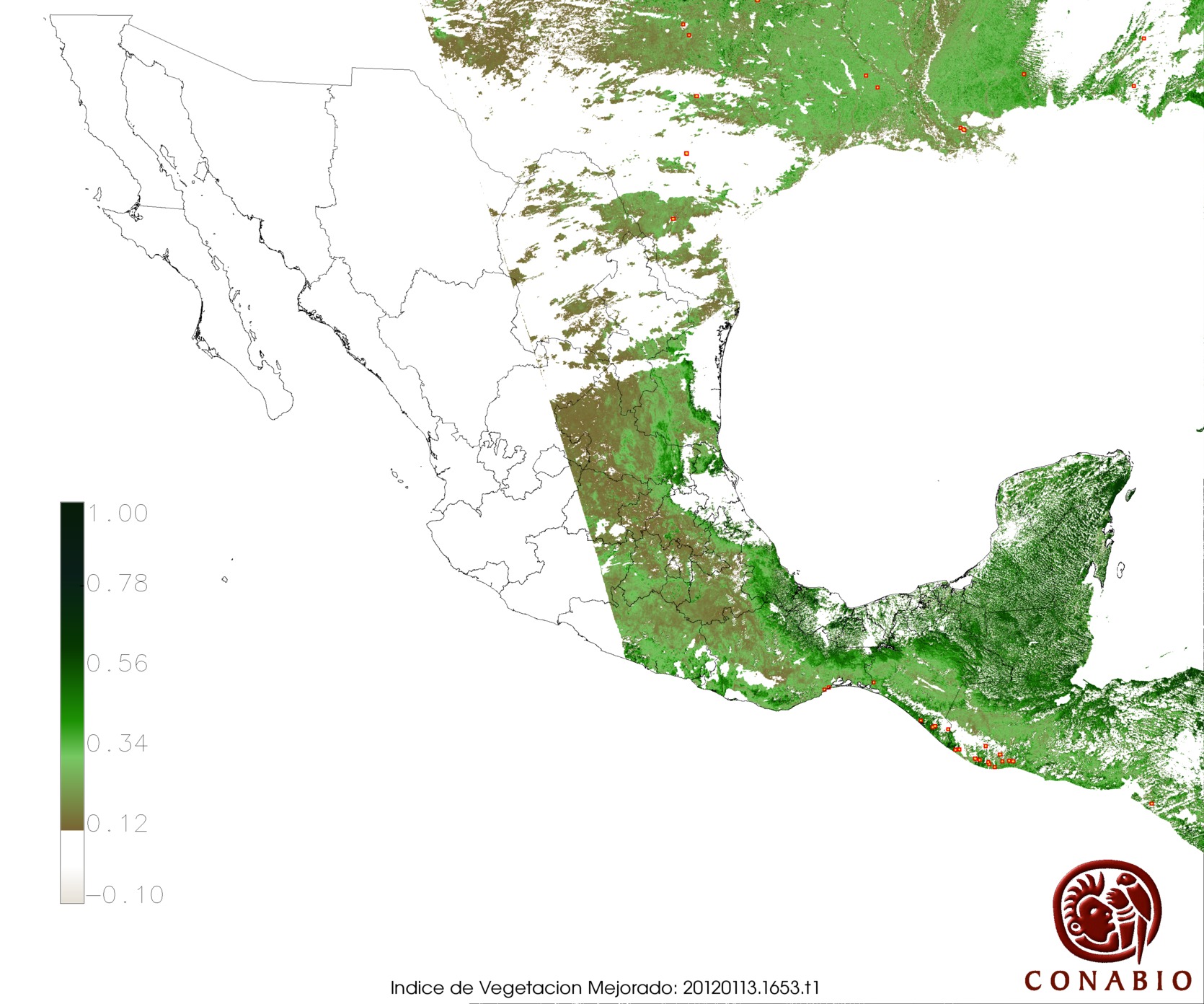 Los valores del índice van de -1 a 1, entre más cercano al valor 1 la vegetación presenta mayor vigor. Los índices de vegetación son utilizados para conocer el comportamiento de la vegetación tanto espacial como temporal. |