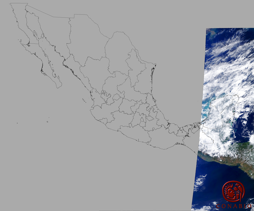 Nubosidad en el terreno:7% Nubosidad sobre México:7% Datos nulos en la escena:0% Datos nulos sobre México:0% |