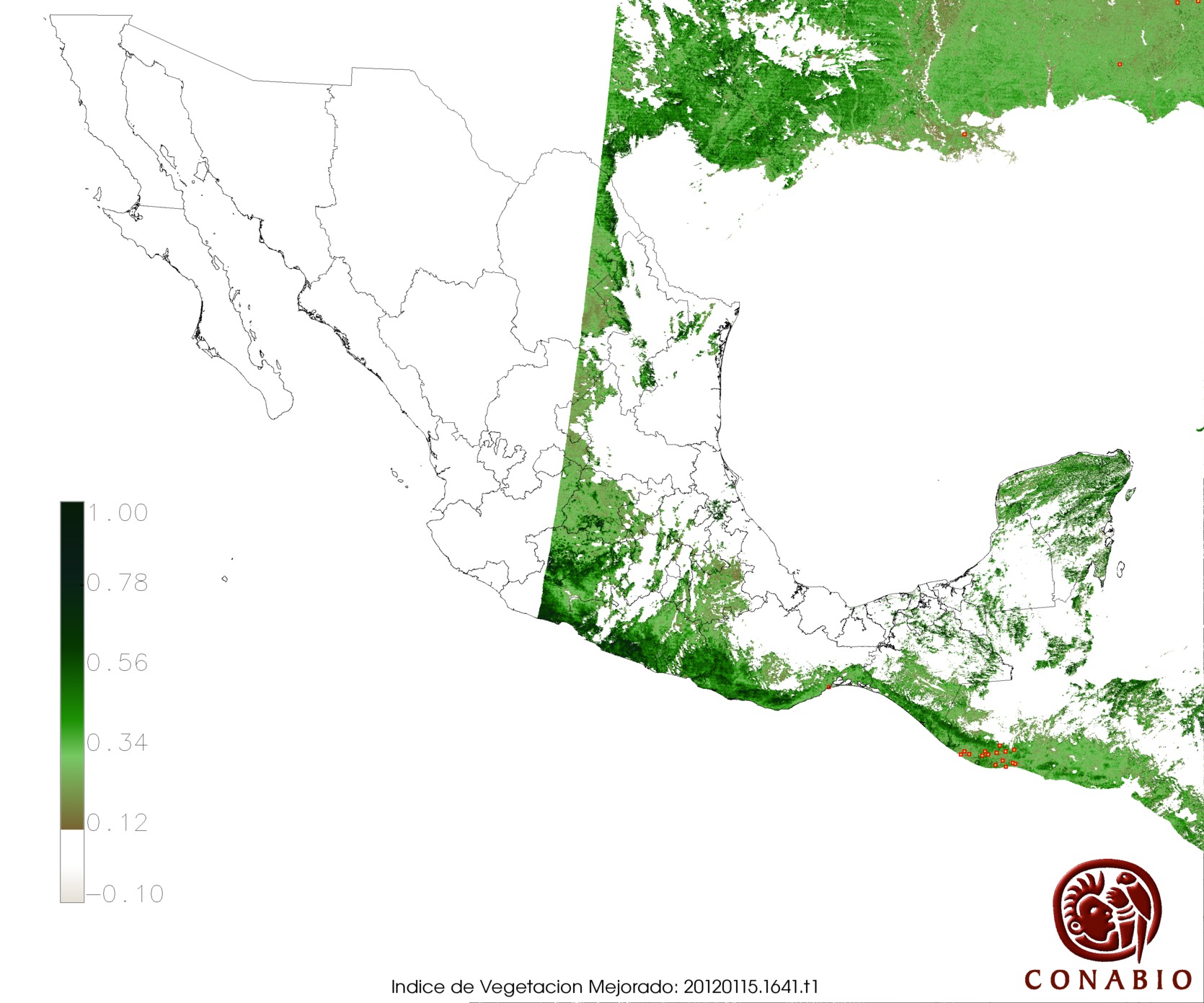 Los valores del índice van de -1 a 1, entre más cercano al valor 1 la vegetación presenta mayor vigor. Los índices de vegetación son utilizados para conocer el comportamiento de la vegetación tanto espacial como temporal. |